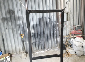 Переходим к следующему этапу – изготовлению опоры. Из прямоугольных профильных труб нарезаем полосы необходимой длины так, чтобы в итоге из них можно было собрать «рамку на ножках».